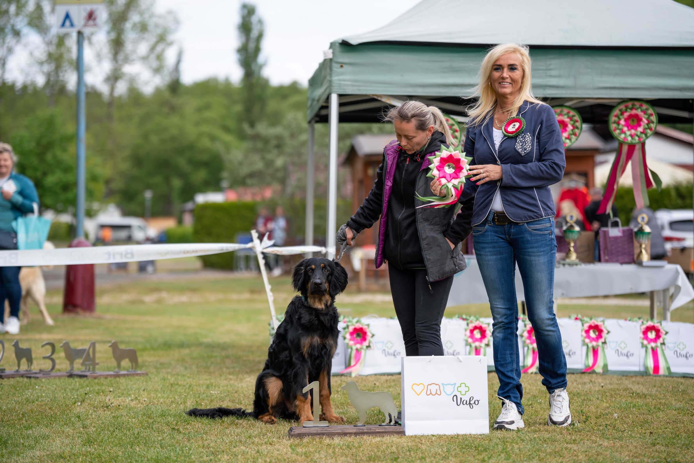 Felisha a Fergas na své první klubové výstavě. Foto: Hovawart Klub ČR