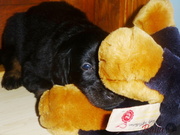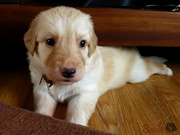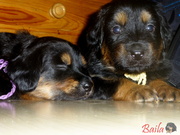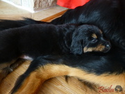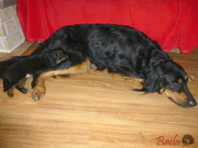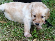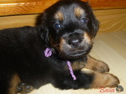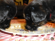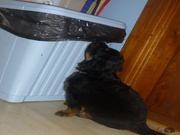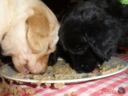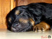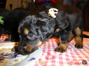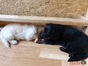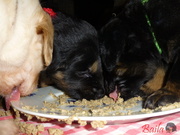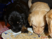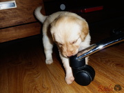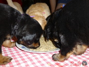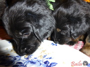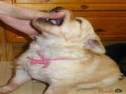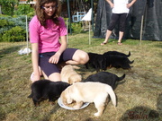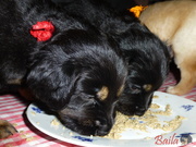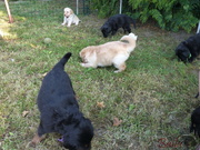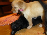 Štěňátkům se už moc nechce pobývat v porodní bedně a tak tráví dny povětšinou na zahradě v ohrádce a nebo šmejdí po obýváků a prozkoumávají každé zákoutí