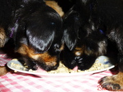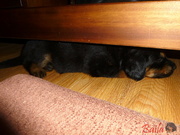 Vrh AŠtěňátkům se už moc nechce pobývat v porodní bedně a tak tráví dny povětšinou na zahradě v ohrádce a nebo šmejdí po obýváků a prozkoumávají každé zákoutí