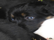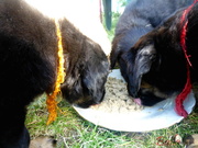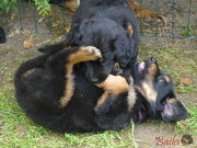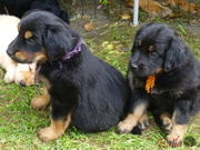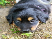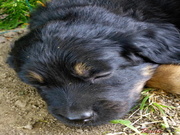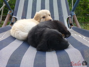 Když je venku hezky, tak si štěňátka hoví v ohrádce na zahradě.